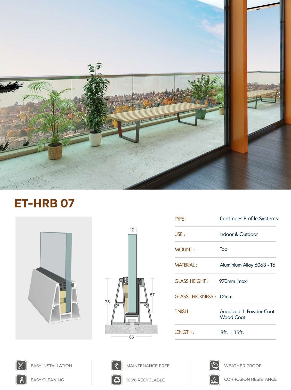 Perfect aesthetic result Unlimited view Easy cleaning Maintenance free